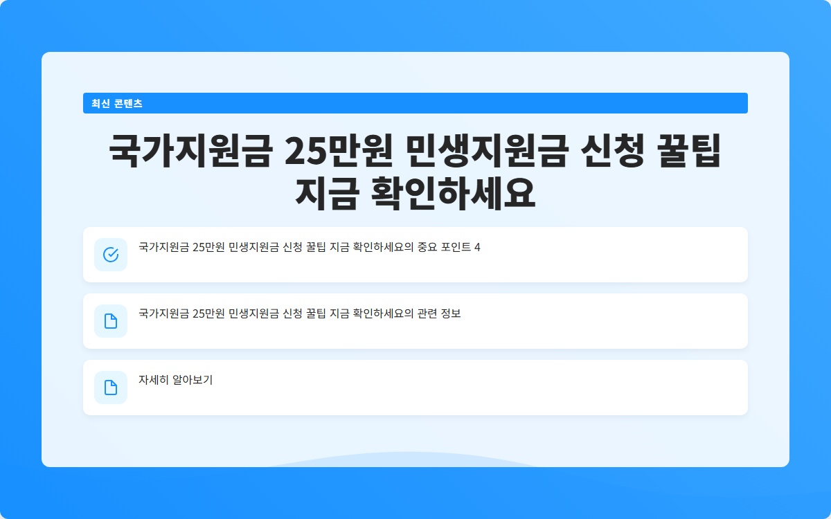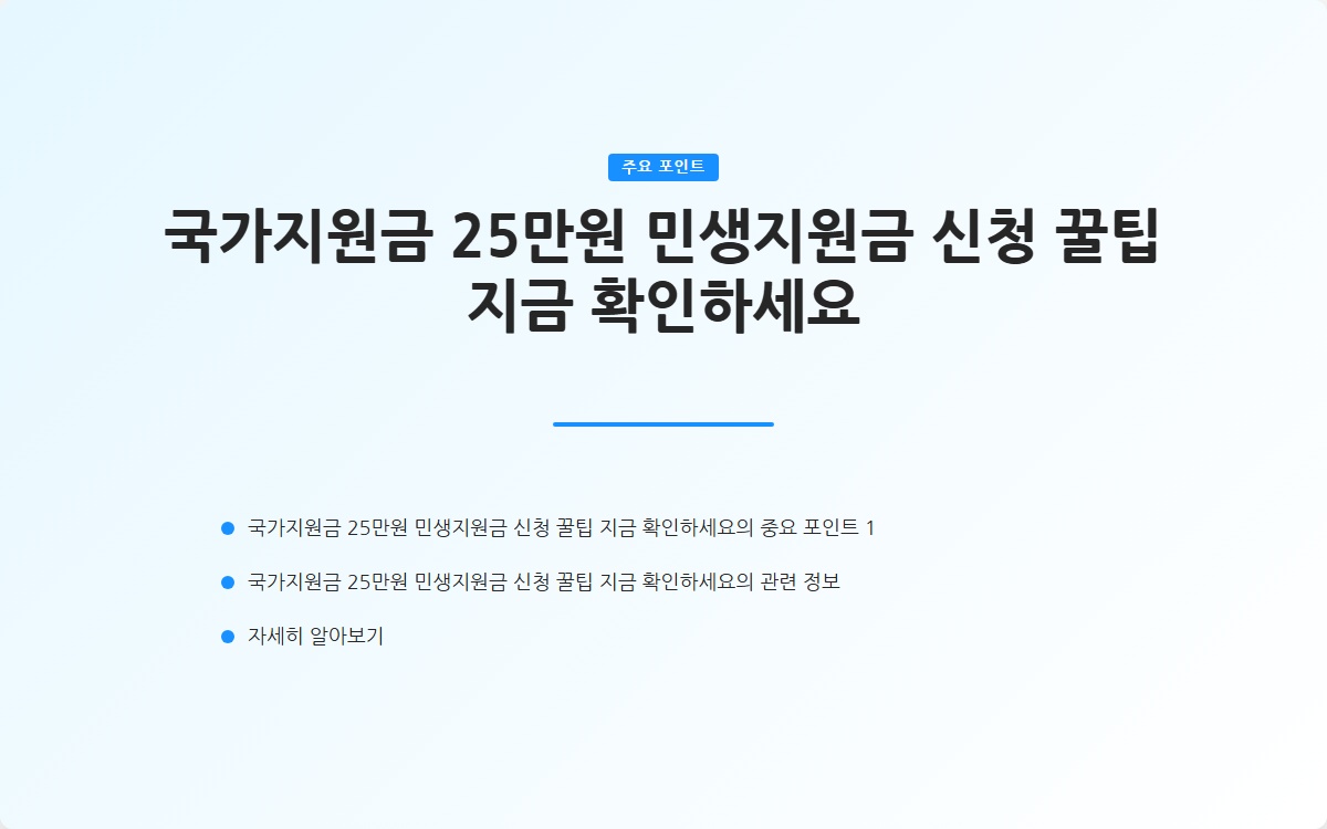 최근 정부는 민생지원금 25만원을 통해 국민의 생활 안정과 경제 회복을 도모하고 있습니다.