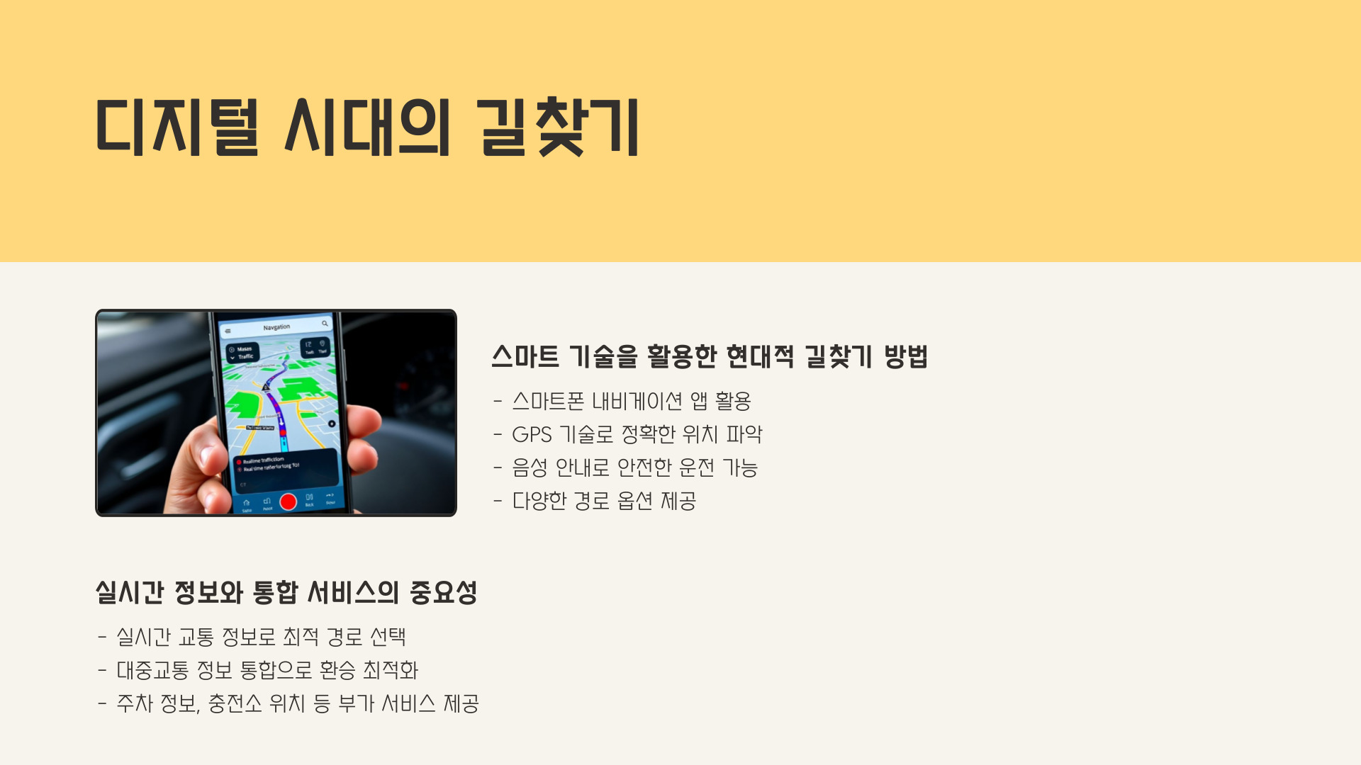 - 스마트폰 내비게이션 앱 활용