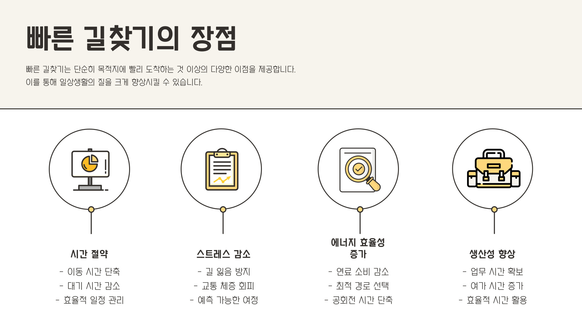| 도로 상황 확인 | 사고나 공사로 인한 교통 체증을 미리 확인합니다. |