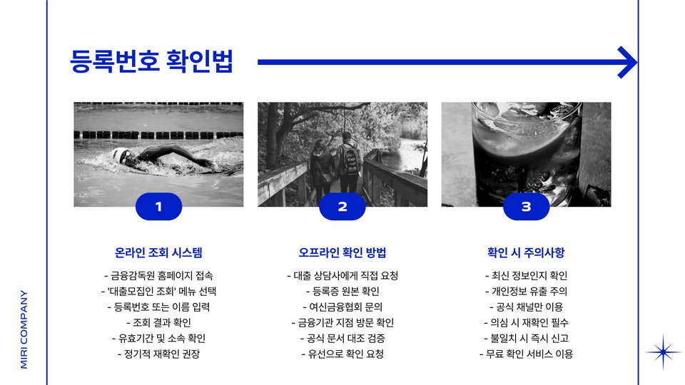 등록번호는 국가에서 관리하며, 이를 통해 대출 상담사가 법적으로 요구되는 교육과 자격을 갖추었음을 보장합니다. 고객들은 이 번호를 통해 간편하게 상담사의 자격을 확인할 수 있으며, 이는 안전한 대출 상담을 위한 필수 요건 중 하나입니다. 대출 상담사가 정해진 절차를 통해 교육을 이수하고 자격 시험에 통과했는지 여부를 확인할 수 있는 중요한 수단이 됩니다.