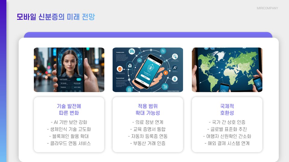 모바일 신분증의 발전은 앞으로도 계속될 것입니다. 인공지능과 블록체인 기술을 활용한 보다 안전한 신원 인증 시스템이 도입될 가능성이 큽니다. 이를 통해 사용자들은 더욱 신뢰할 수 있는 방식으로 신원을 증명할 수 있을 것입니다.