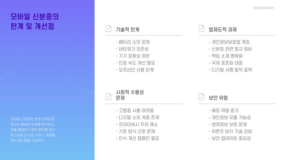 또한, 사회적 측면에서도 많은 변화가 기대됩니다. 모바일 신분증의 보급은 거래의 투명성을 높이고, 범죄 예방에도 기여할 수 있습니다. 이로 인해 개인과 사회 모두에게 긍정적인 영향을 미칠 것입니다.