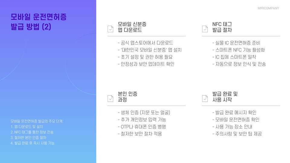 - 발급 절차가 간단하며, 생체 인식으로 보안성이 강화되었습니다.