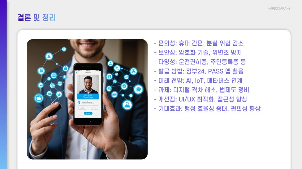 결론적으로, 모바일 신분증은 단순한 인증 수단을 넘어, 우리의 생활 방식을 변화시키는 중요한 역할을 하고 있습니다. 앞으로도 이 기술이 어떻게 발전하고, 우리의 삶에 어떤 변화를 가져올지 기대됩니다.