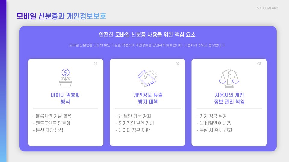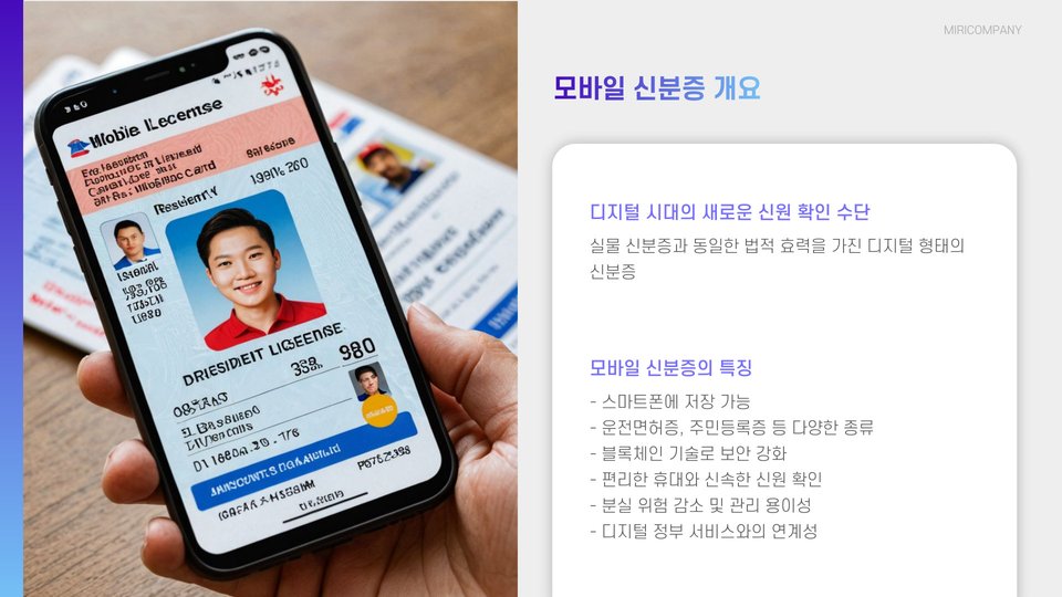 - 모바일 신분증은 디지털 형태의 신분증으로 편리함을 제공합니다.