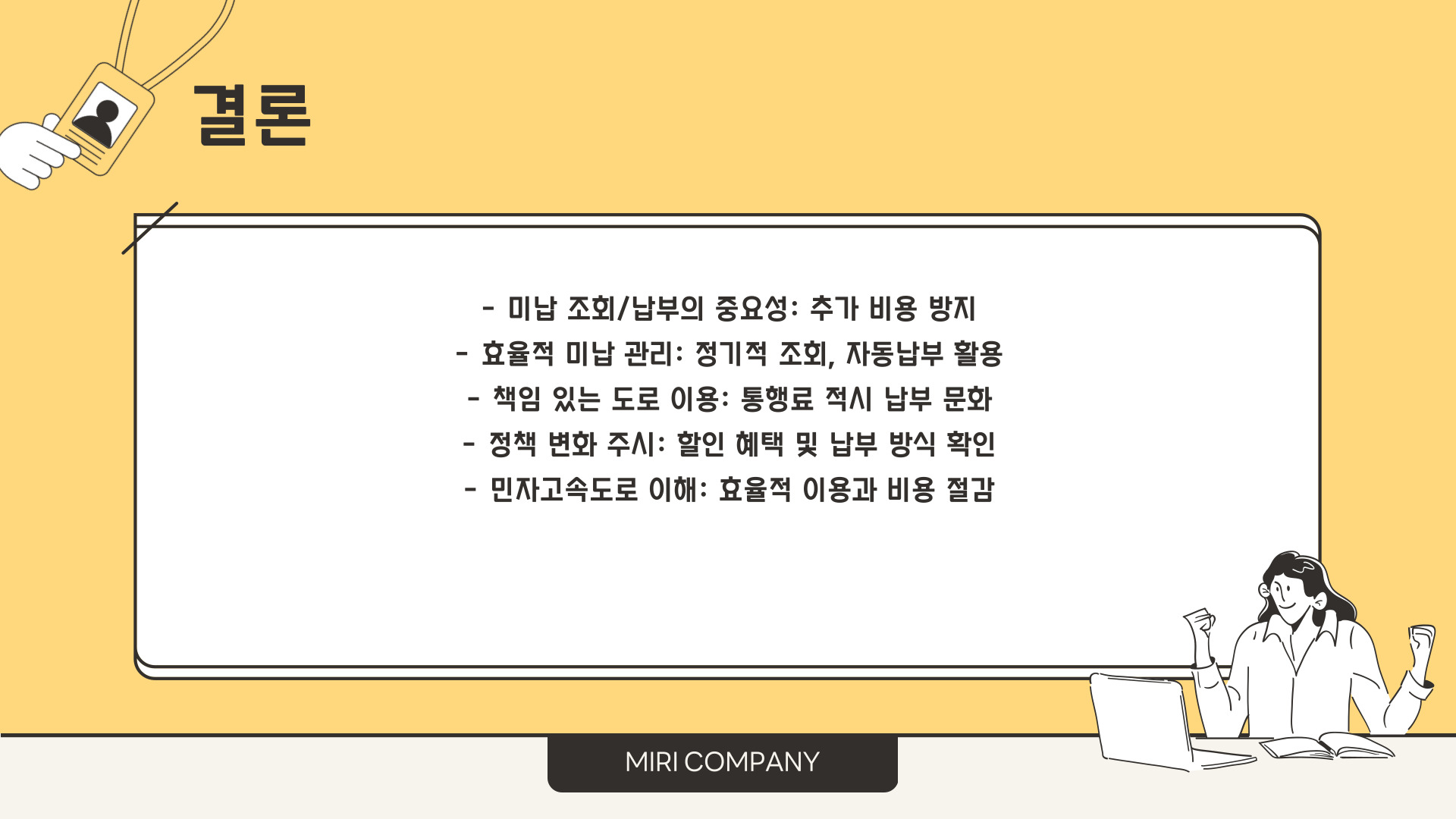 - 렌터카 이용 시 하이패스 카드 확인이 필수적이다.