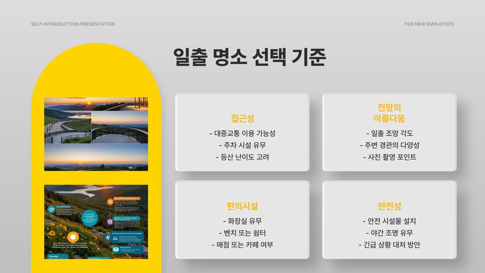 마지막으로, 서울에서의 일출은 단순히 시각적인 경험뿐만 아니라 심리적인 편안함을 줄 수 있는 시간입니다. 하루를 긍정적인 마음으로 시작할 수 있는 기회를 제공하니까요. 이처럼 서울의 새로운 시작을 함께하며 일출의 아름다움을 느껴보시길 바랍니다.