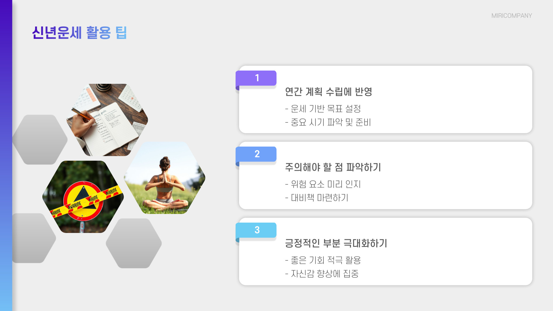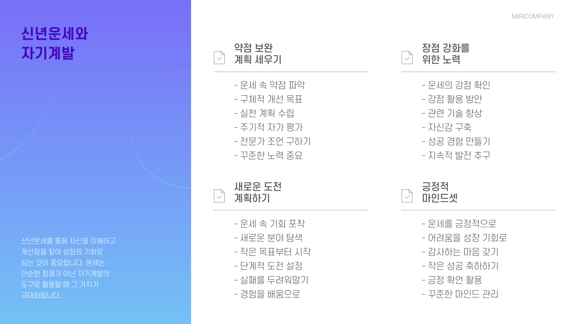 - 운세를 맹신하지 말고 참고자료로 활용하는 것이 중요합니다.
