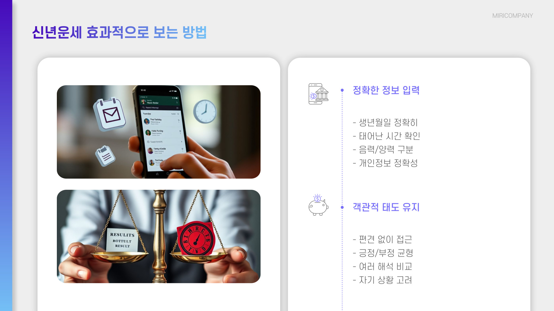 - 운세는 재미로 접근하되 절대적인 기준으로 삼지 말기.