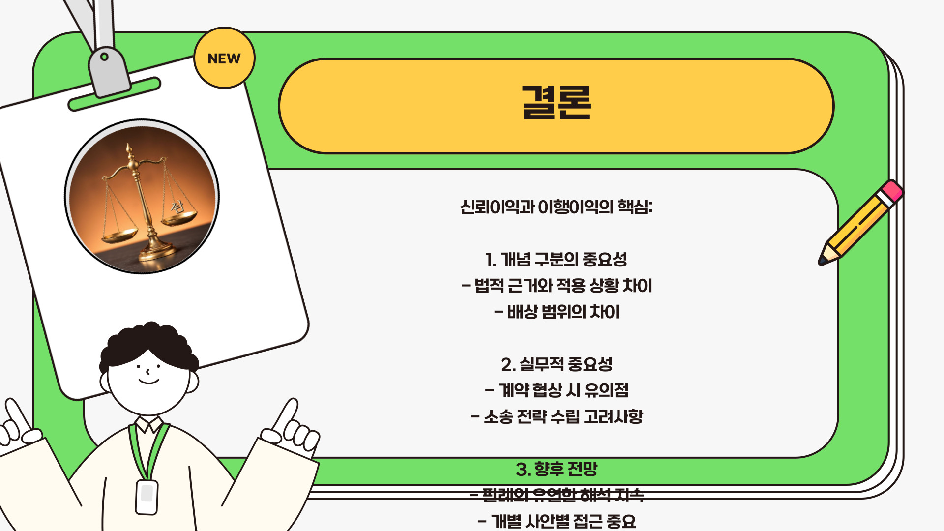신뢰이익과 이행이익은 우리가 일상생활에서 놓칠 수 없는 중요한 요소입니다. 이 두 가지는 상호 연결되어 있으며, 신뢰를 잃으면 이행이익 또한 손실하게 됩니다. 따라서 신뢰를 확고히 하고 이를 바탕으로 적극적으로 이행해 나가는 것이 필수적입니다. 실패를 경험하는 것도 중요하지만, 그 과정에서 주의하고 배우는 것이 더 중요합니다.