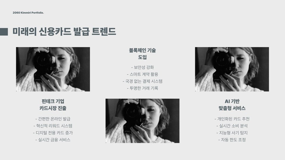 또한, 금융사들은 소득 수준뿐만 아니라 소비 패턴과 직업군에 대한 분석도 실시하여 보다 개인 맞춤형 카드 상품을 제공하고 있습니다. 이러한 흐름은 금융업계의 경쟁을 촉진하고, 소비자에게 더 나은 혜택과 조건을 제공하게 됩니다. 따라서, 사용자들이 요구하는 다양한 카드 상품이 출시되고 있습니다.