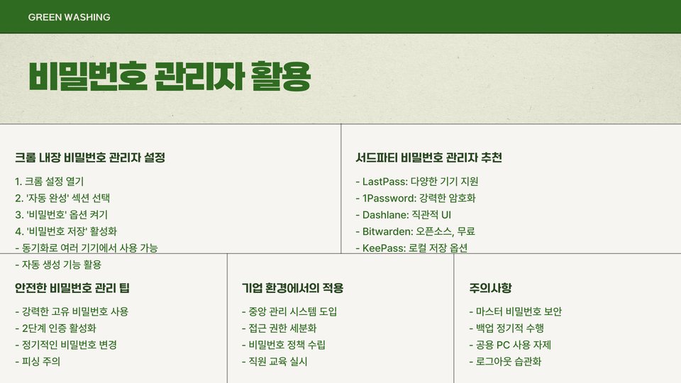 - 비밀번호 관리 도구 활용