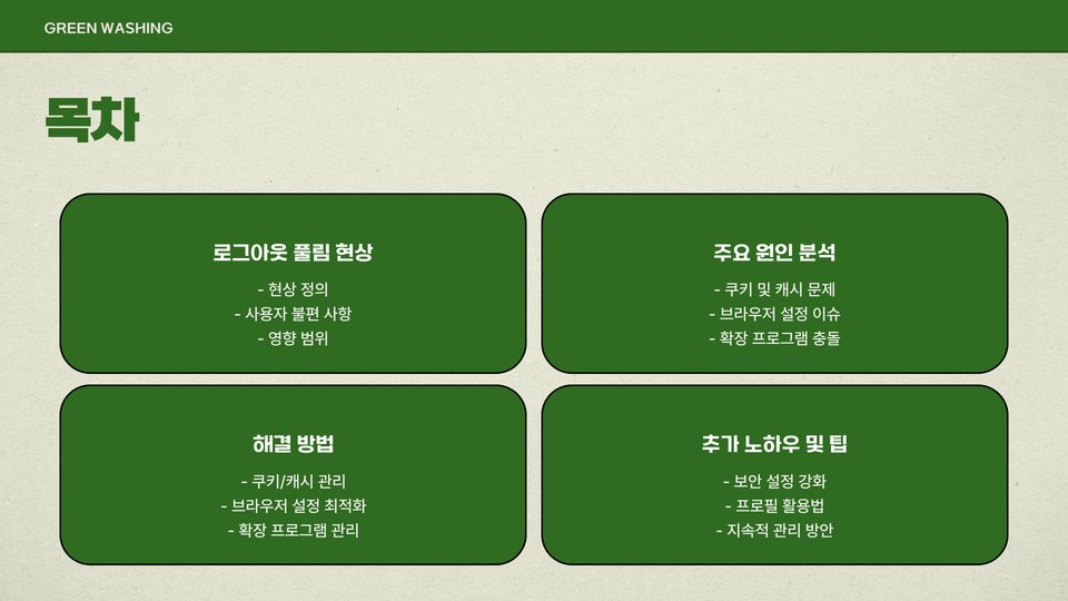 로그아웃이 풀리는 현상은 여러 가지 요인에 의해 발생할 수 있습니다. 첫째, 브라우저 캐시와 쿠키의 과도한 저장은 자주 발생하는 원인 중 하나입니다. 브라우저가 저장하는 정보가 많아지면, 로그아웃 상태를 제대로 인식하지 못할 수 있습니다. 둘째, 다중 계정 사용이 문제를 일으킬 수 있습니다. 여러 계정을 동시에 사용하다 보면, 의도치 않게 다른 계정으로 전환되면서 로그아웃이 풀리는 경우가 많습니다. 셋째, 브라우저의 설정과 보안 정책도 중요한 요소입니다. 특정 보안 설정이 활성화되어 있으면 로그아웃 상태가 유지되지 않을 수 있습니다.
