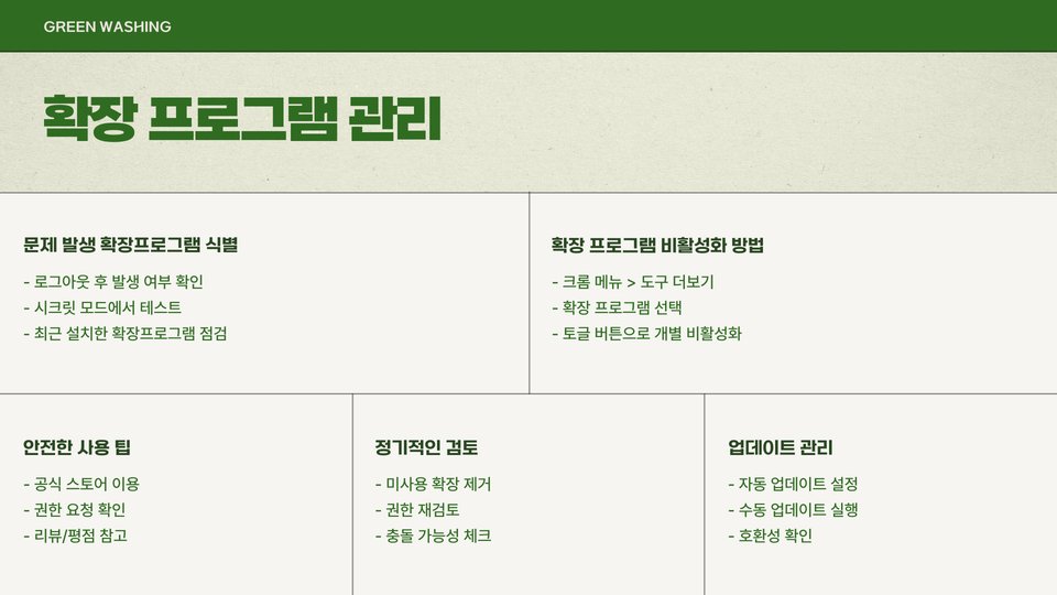 크롬에서 로그아웃이 풀리는 문제를 해결하기 위해 몇 가지 유용한 팁을 소개합니다. 첫째, 브라우저의 캐시와 쿠키를 정기적으로 삭제하는 것이 중요합니다. 이렇게 하면 불필요한 데이터가 제거되어 브라우저가 원활하게 작동할 수 있습니다. 둘째, 보안 설정을 점검하여 필요한 경우 적절한 수준으로 조정하는 것이 좋습니다. 예를 들어, "자동 로그인" 옵션을 활성화하면 편리하지만 보안상 위험할 수 있습니다. 셋째, 브라우저 업데이트를 정기적으로 실시하여 최신 보안 패치를 적용하는 것이 필수적입니다.