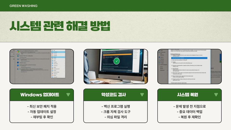 | 브라우저 캐시 과다 | 정기적으로 캐시 및 쿠키 삭제 |