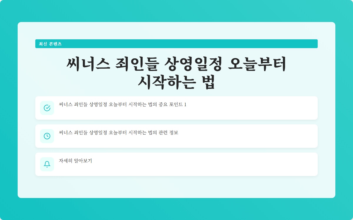 영화 씨너스: 죄인들의 상영일정 확인은 관람 준비의 첫 단계입니다. 정확한 일정과 정보를 통해 놓치는 일이 없도록 하세요. 영화의 매력을 느끼고, 다가오는 개봉일을 기대해 보세요!