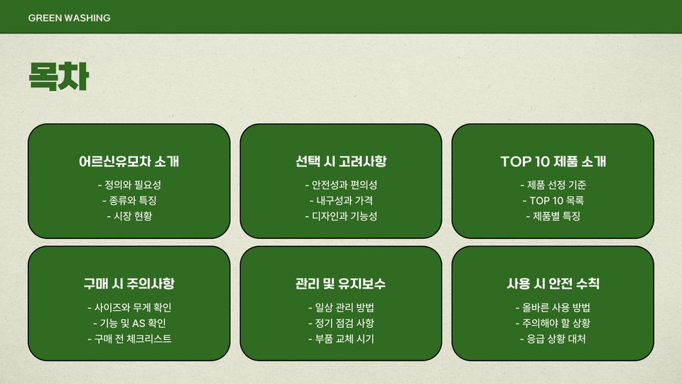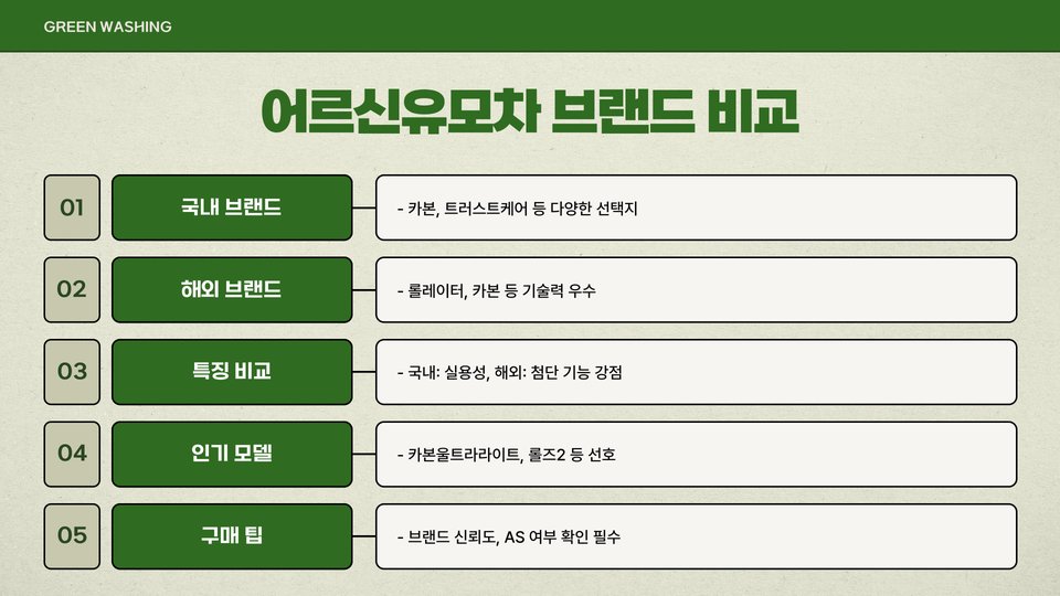 - 1. ABC 어르신유모차: 경량이면서도 튼튼한 구조로, 브레이크 시스템이 우수합니다.
