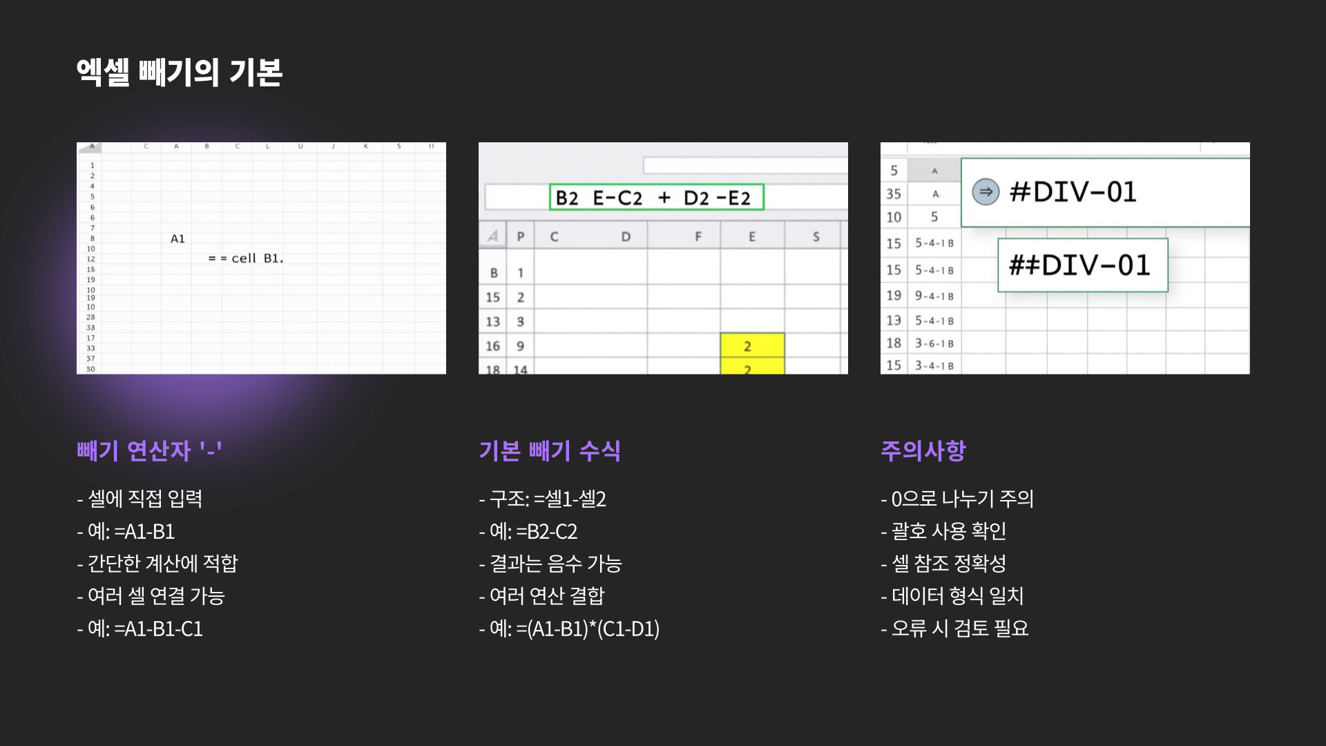 • 엑셀 빼기 수식의 기본 구조 이해하기
