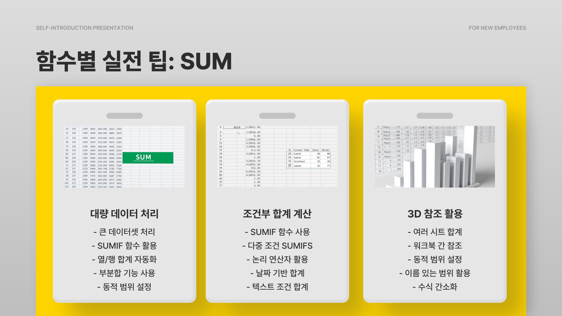 엑셀 함수를 효과적으로 사용하기 위한 몇 가지 팁을 소개합니다. 첫째, 함수 마법사를 활용하세요. 엑셀에서는 각 함수의 사용법과 예제를 쉽게 찾아볼 수 있는 기능이 제공됩니다. 둘째, 기본 함수부터 차근차근 익히는 것이 좋습니다. 복잡한 함수에 도전하기 전에, 기본적인 함수 사용법을 완전히 숙지하는 것이 중요합니다. 마지막으로, 다양한 예제를 통해 실습하는 것이 가장 효과적입니다.