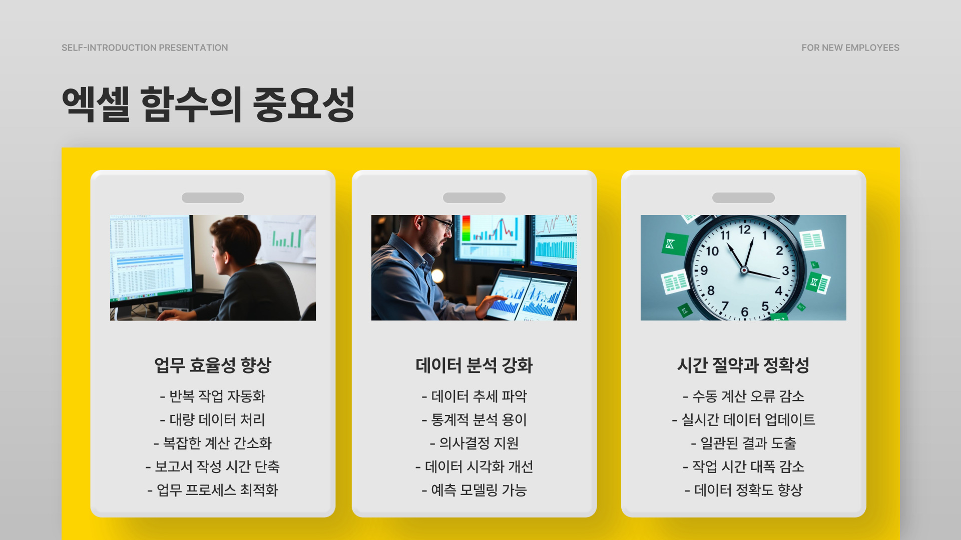 - 엑셀 함수는 데이터를 자동으로 처리해주는 도구입니다.
