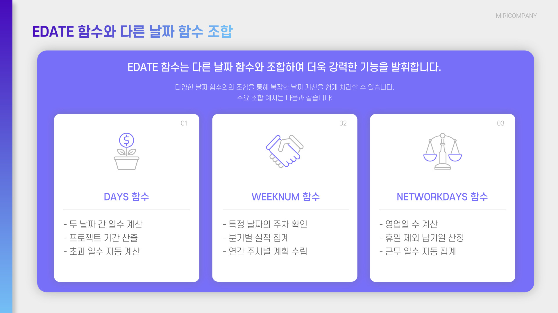 - EDATE 함수는 날짜 계산의 효율성을 높임