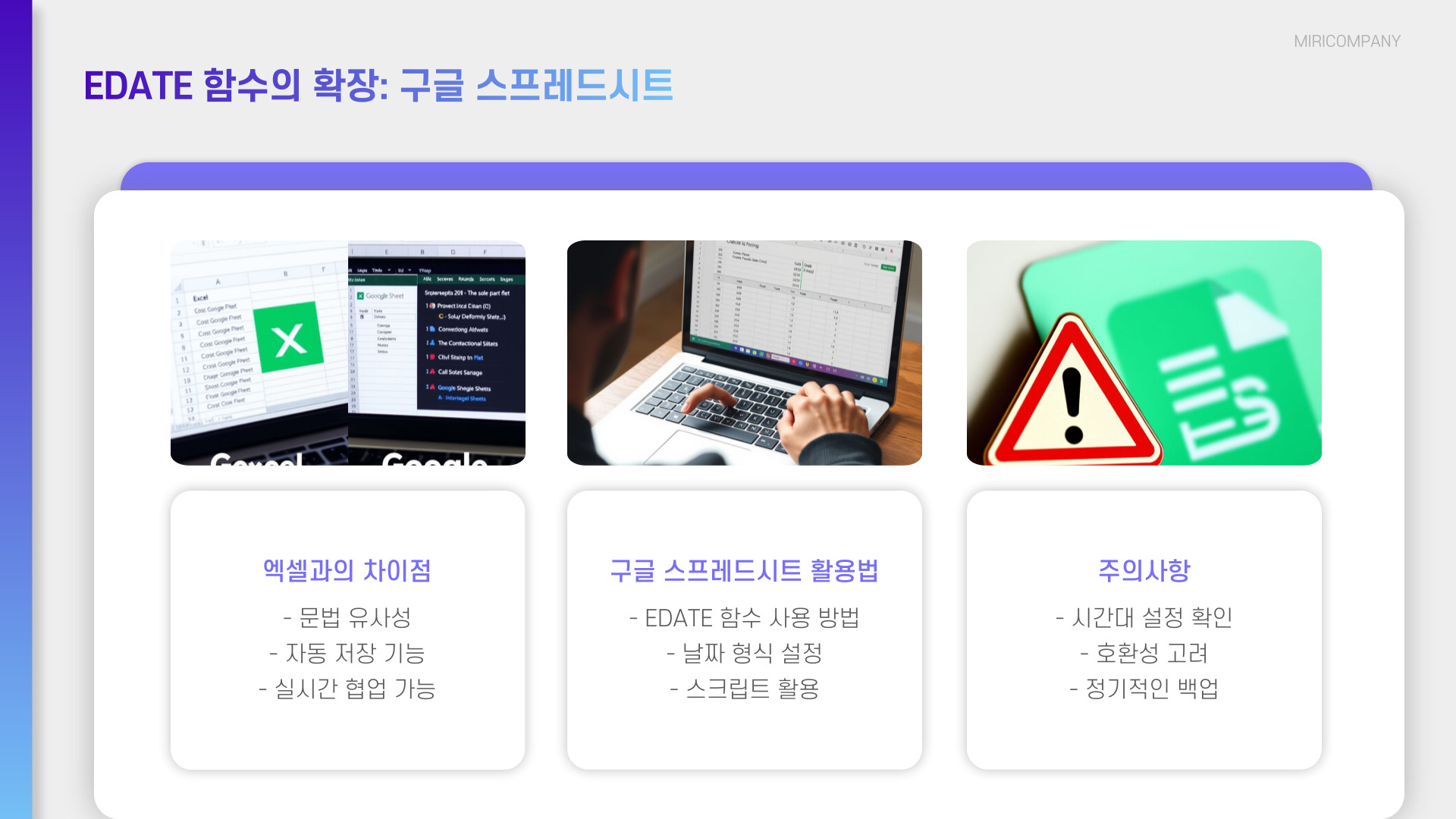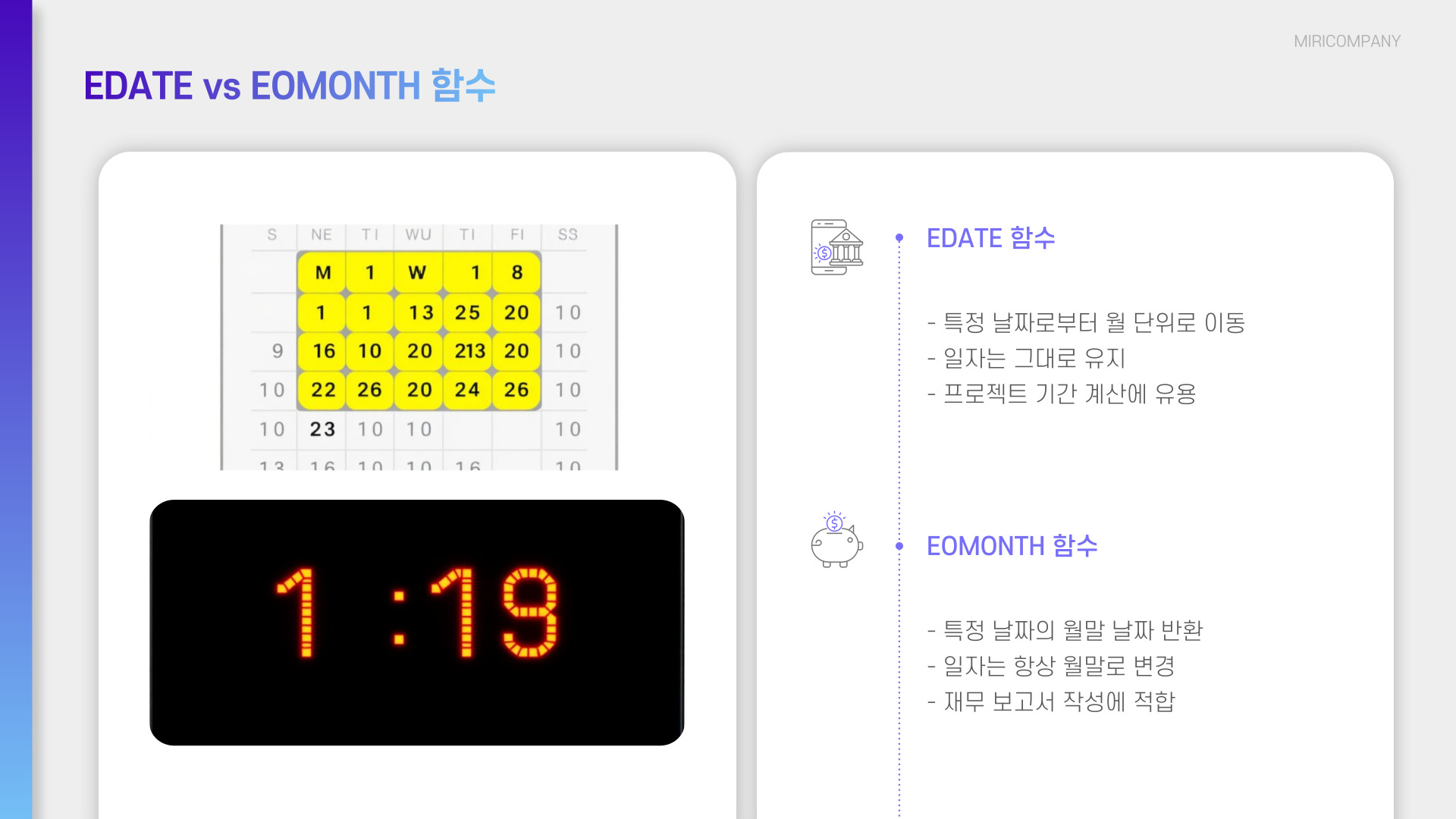- EDATE 함수는 날짜 계산의 효율성을 높임