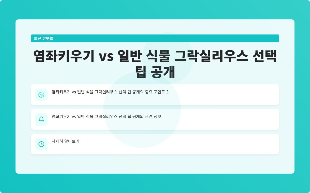 식물을 처음 기르려는 분들은 어떤 식물이 잘 자라고 관리하기 쉬운지에 대한 고민이 많습니다. 특히, 염좌키우기는 다육 식물 중에서도 인기 있는 선택지입니다. 이 글에서는 염좌와 일반 식물인 그락실리우스의 특징을 비교하고, 이를 통해 독자들이 올바른 선택을 할 수 있도록 도와드리겠습니다.