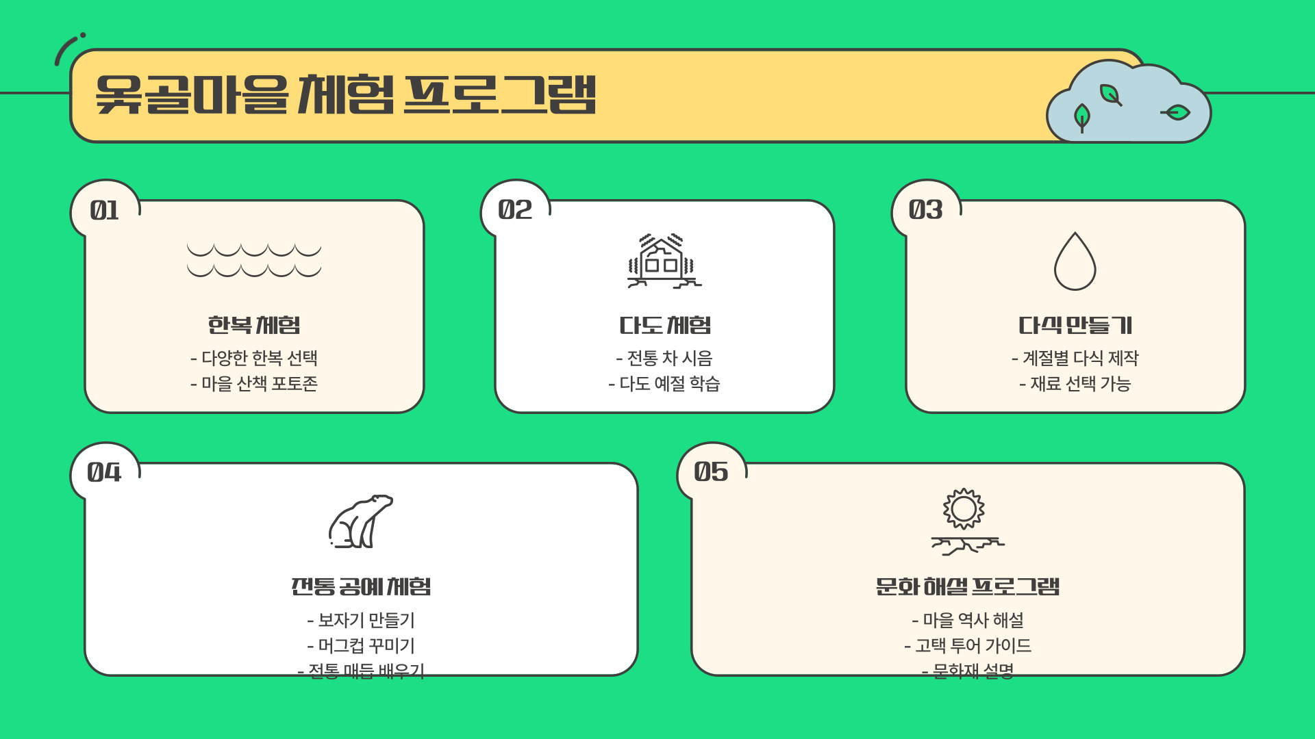 - 사전 예약이 필요한 체험 프로그램은 미리 확인하세요.