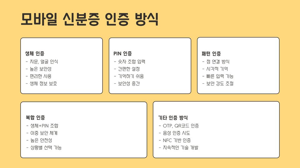 또한, 안전성 역시 빼놓을 수 없는 요소입니다. 지난 몇 년간 해킹과 개인 정보 유출이 문제가 되었는데, 모바일 신분증은 생체 인식, PIN 코드 등 다양한 보안 절차를 통해 사용자 정보를 보호합니다. 그러므로 사용자는 상대적으로 더욱 안심하고 전자 인증 절차를 진행할 수 있습니다.