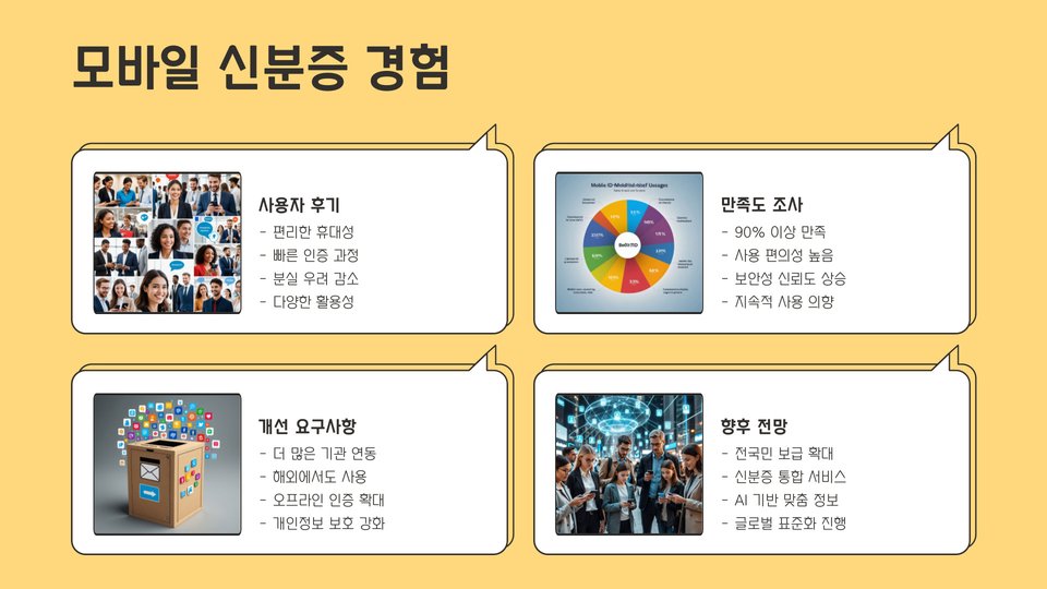 모바일 신분증을 사용하는 여러 이점 중 하나는 편리함입니다. 언제 어디서나 스마트폰을 꺼내면 자신의 신분을 인증할 수 있으므로, 더 이상 지갑을 찾고 신분증을 꺼낼 필요가 없습니다. 사람들이 자주 사용하는 온라인 서비스를 통해 빠르게 인증할 수 있게 되는 것은 큰 장점입니다! 예를 들어, 온라인 쇼핑이나 금융 서비스 이용 시 모바일 신분증을 통해 쉽게 본인을 확인할 수 있습니다.