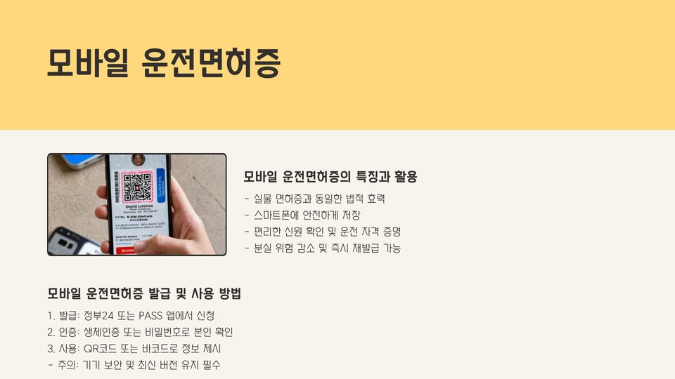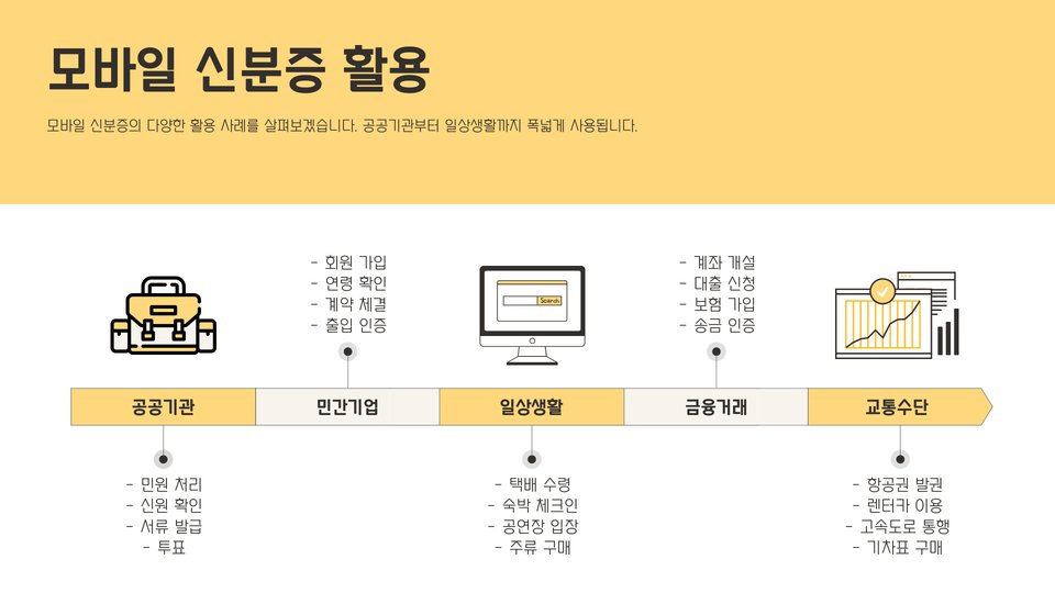 - 모바일 신분증은 편리성, 안전성, 환경친화성 측면에서 많은 장점을 지닙니다.