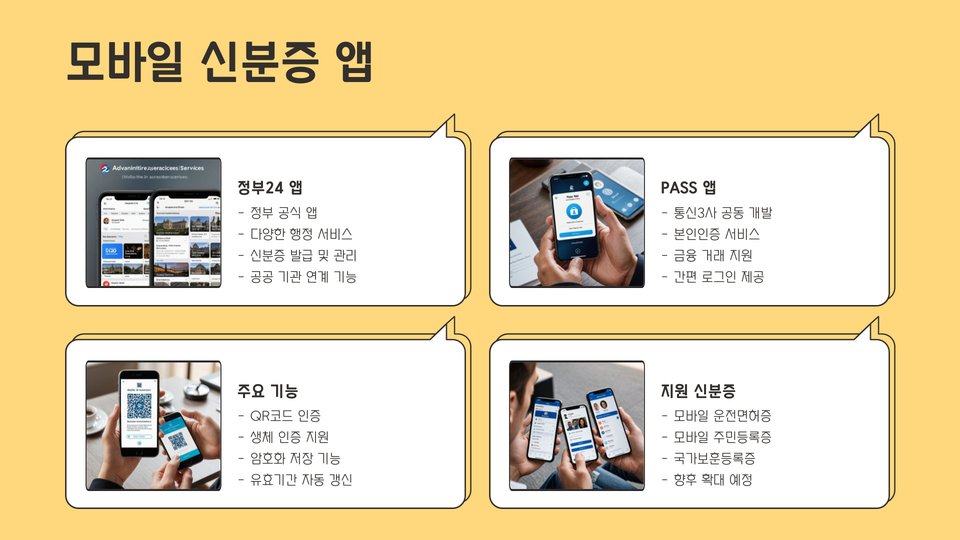 - 추천 어플: 전자 신분증 어플, 패스 어플, 공공 인증서 어플