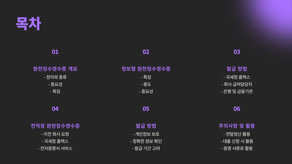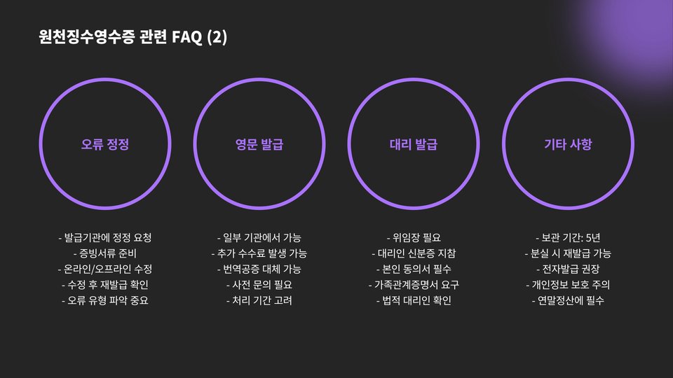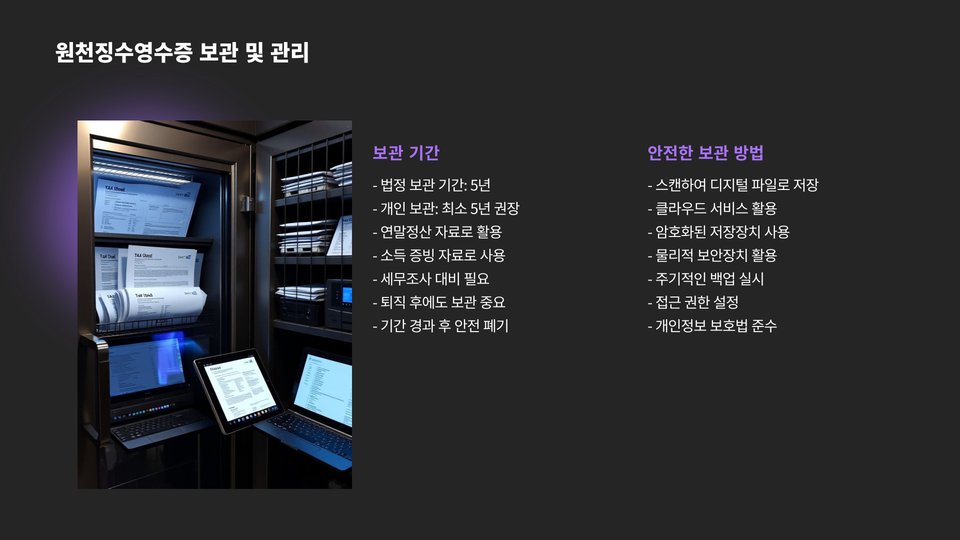 - 원천징수영수증은 세금 정산에 필수적입니다.