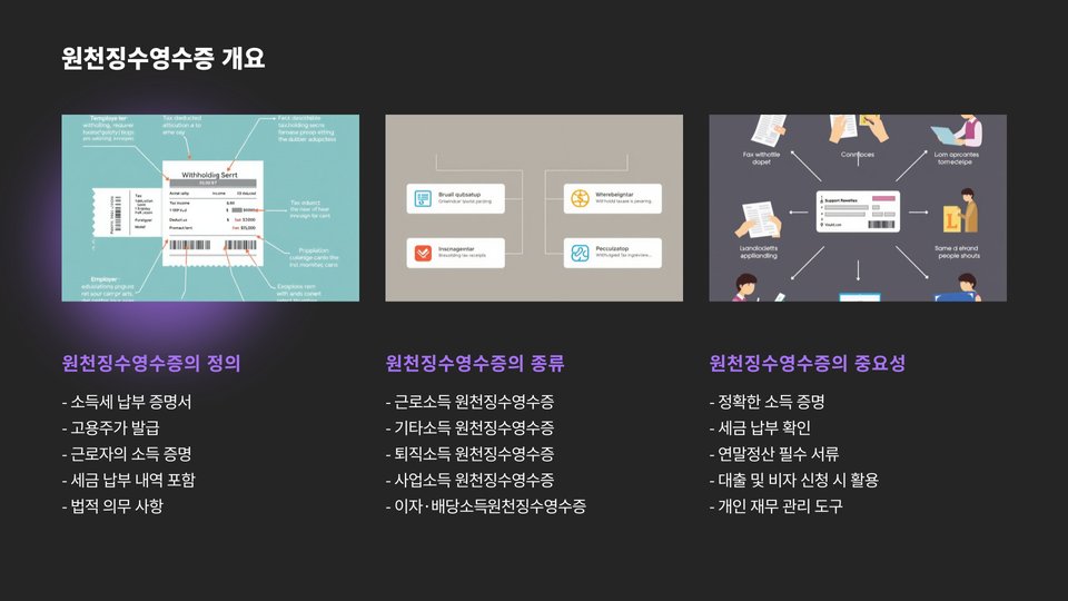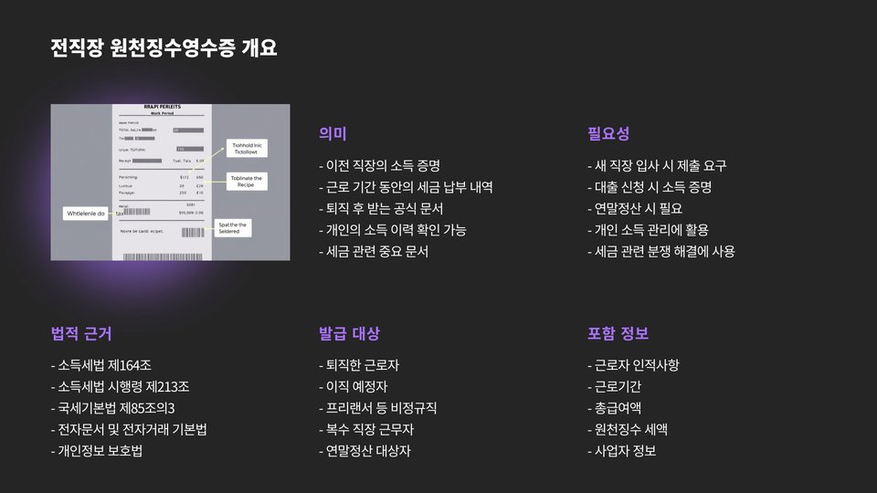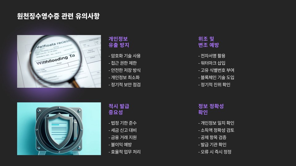 - 원천징수영수증은 세금 정산에 필수적입니다.