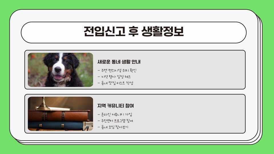 전입신고가 완료된 후에는 몇 가지 확인해야 할 사항이 있습니다. 먼저, 신고 내용이 정확히 반영되었는지 확인해야 합니다. 주민센터에 문의하거나 온라인을 통해 확인할 수 있습니다. 전입신고를 하지 않으면 임대차계약의 효력이 제한될 수 있으므로 주의가 필요합니다.