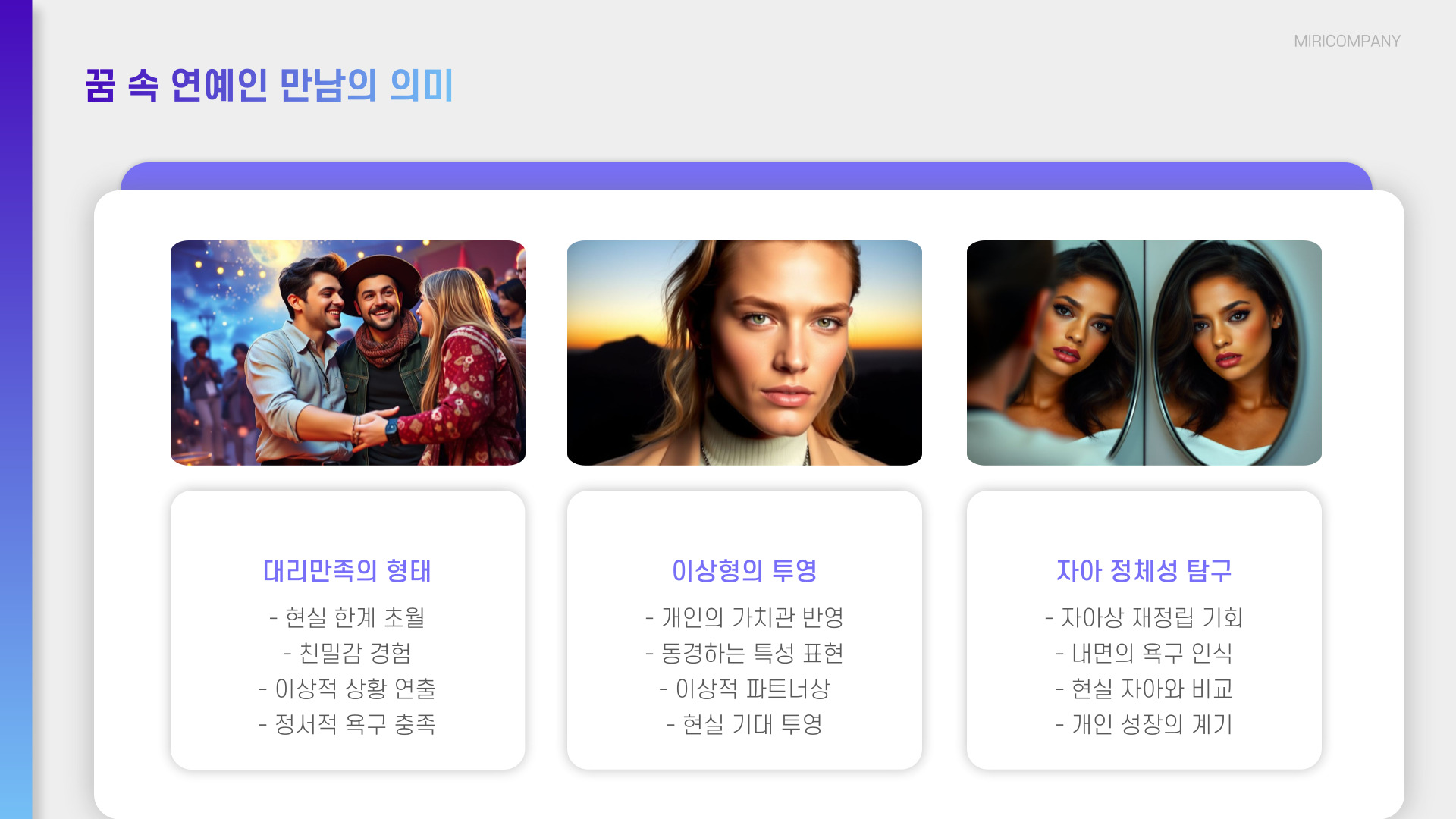 • 연예인 꿈은 개인의 욕망과 심리적 상태를 반영한다.