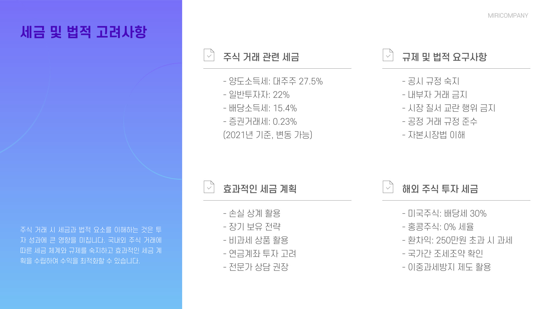 - 개인 투자 스타일에 맞는 전략을 수립해야 한다.