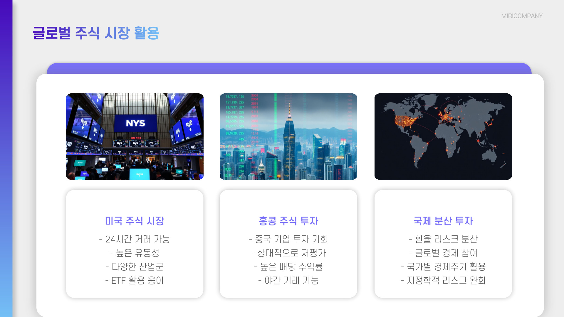| 다양한 포트폴리오 구성 | 위험을 줄이기 위해 여러 산업에 투자 |