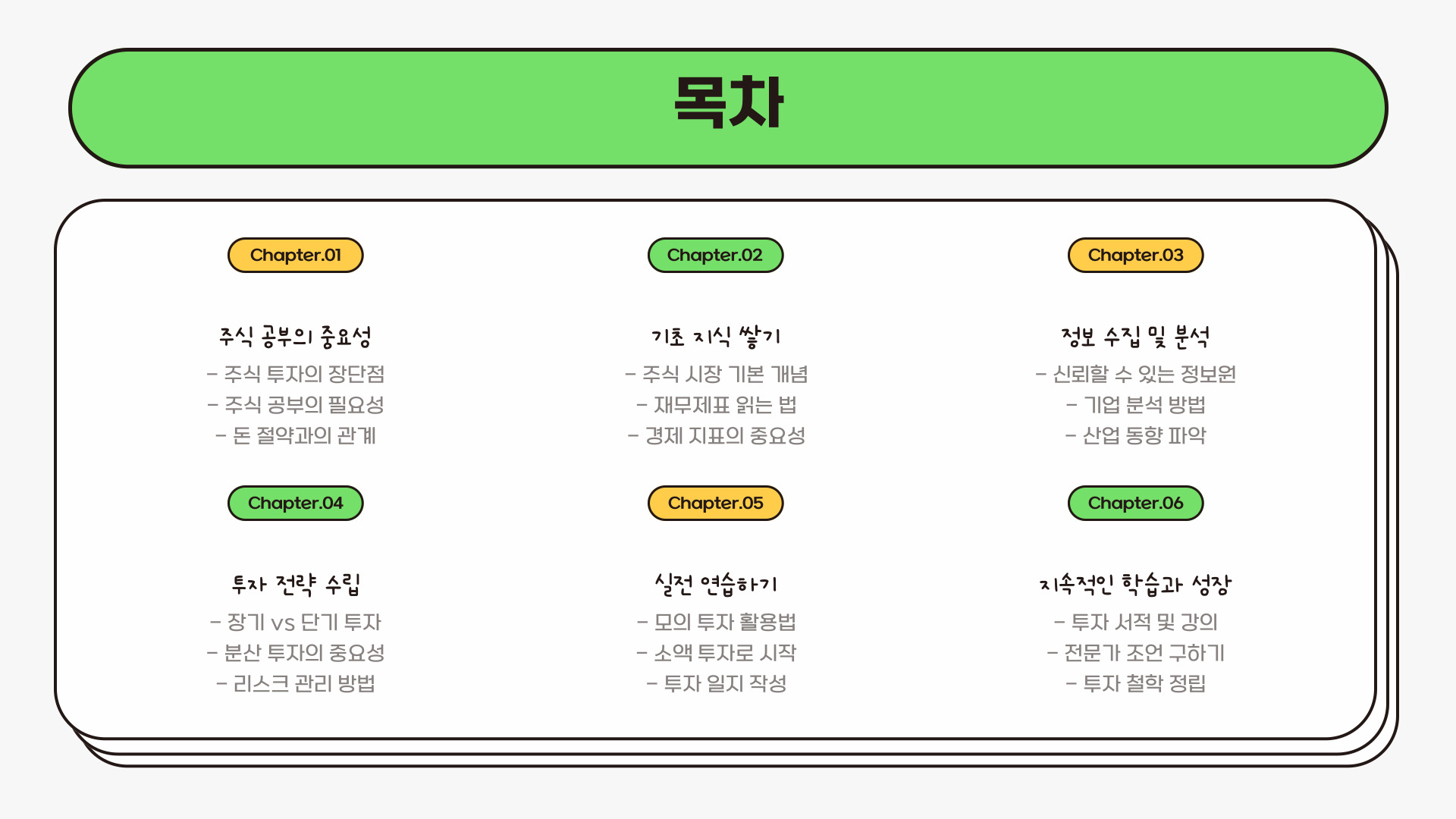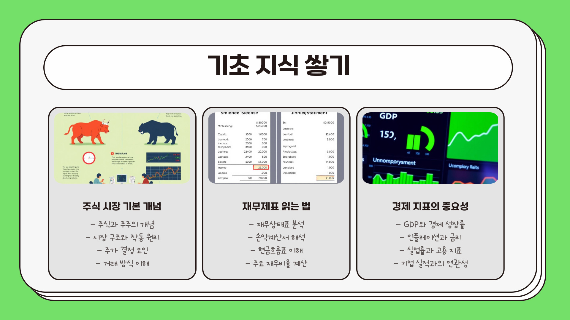 마지막으로, 주식 공부는 단기적인 것이 아니라 지속적인 자기 개발이 필요합니다. 매일 시장 뉴스를 체크하고, 전문가의 의견을 참고하는 것이 좋습니다. 주식 투자에서 성공하기 위해서는 항상 최신 정보를 유지하고, 변화하는 시장에 적응해야 합니다. 정기적인 자기 점검 또한 필수적입니다.