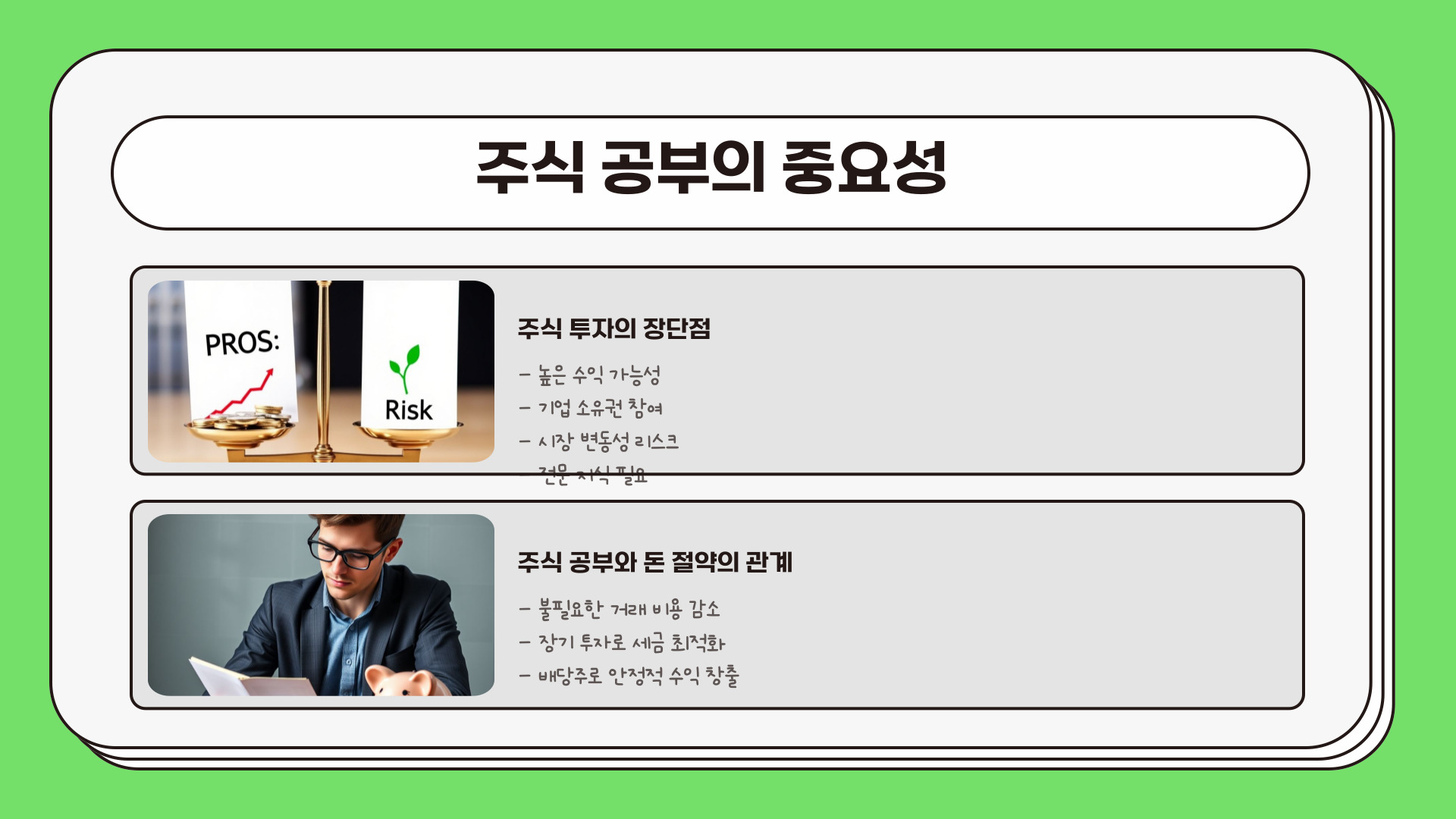 주식 공부를 통해 돈을 절약하는 방법은 여러 가지가 있습니다. 차트 분석, 손절매 전략, 기본적 분석, 다양한 투자 전략 실험, 지속적인 자기 개발 등이 그 예입니다. 이를 통해 보다 현명한 투자자가 되어 손실을 줄이고 안정적인 수익을 올릴 수 있습니다. 주식 투자는 단순한 게임이 아니라, 철저한 준비와 분석이 필요한 분야임을 잊지 마세요.