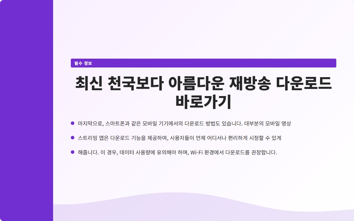 재방송 다운로드를 고려할 때는 꼭 공식 경로를 이용하여 저작권을 준수하세요.