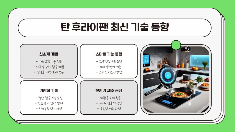탄 후라이팬은 현대 요리에서 필수적인 도구로 자리 잡고 있습니다. 그 뛰어난 성능과 환경 친화적인 특성 덕분에 많은 이들이 선호하고 있습니다. 기본적인 사용법, 관리 방법, 다양한 요리에 활용할 수 있는 팁을 통해 여러분도 탄 후라이팬을 더욱 효과적으로 사용할 수 있을 것입니다. 끊임없이 변화하는 요리 트렌드에 발맞추어 탄 후라이팬을 활용해 보세요. 안전하고 맛있는 요리를 즐기세요!