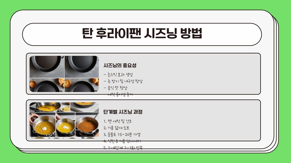 탄 후라이팬을 효과적으로 사용하기 위해서는 몇 가지 기본적인 사용 방법을 익혀야 합니다. 먼저, 적절한 예열이 필요합니다. 후라이팬을 사용할 때는 중간 불로 약 2~3분 정도 예열한 후, 요리를 시작하는 것이 좋습니다. 이렇게 하면 음식이 팬에 잘 붙지 않고 균일하게 익힐 수 있습니다. 예열이 충분하지 않으면 음식이 팬에 달라붙을 수 있습니다.