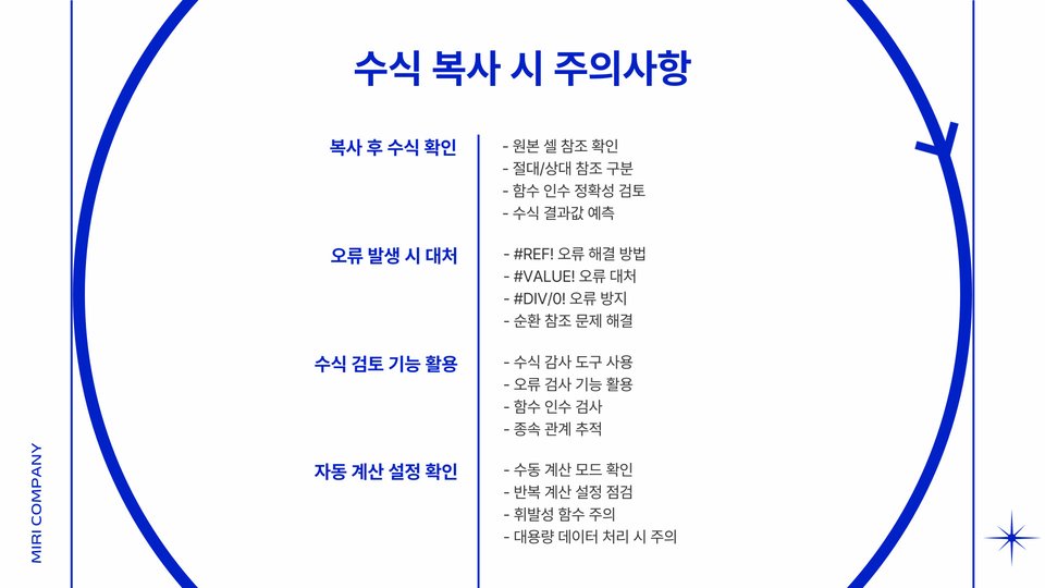 엑셀에서 수식을 복사할 때 주의해야 할 점은 여러 가지가 있습니다. 첫째, 수식 복사 후 결과값을 항상 확인해야 합니다. 수식이 잘못 복사되면 잘못된 데이터가 생성될 수 있습니다. 예를 들어, 특정 셀에 절대 참조가 필요한데 상대 참조로 복사하게 되면 계산 결과가 달라질 수 있습니다.