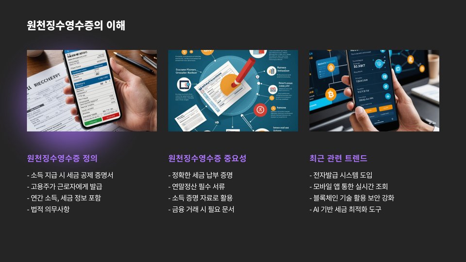 원천징수영수증은 세금 신고와 관련하여 매우 중요한 서류입니다. 디지털 플랫폼을 활용하고, 정확한 정보를 입력하며, 원천징수영수증을 다양한 용도로 활용하는 것이 성공의 열쇠입니다. 이러한 방법들을 통해 여러분도 원천징수영수증을 효과적으로 관리하고 활용할 수 있을 것입니다.