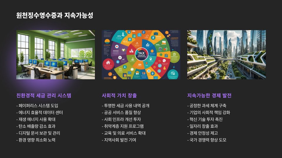 또한, 이러한 디지털 시스템은 데이터 관리를 용이하게 해주며, 세무 조사를 대비하는 데도 유용합니다. 모든 서류가 전자적으로 저장되므로, 필요할 때 언제든지 조회하고 인쇄할 수 있습니다.