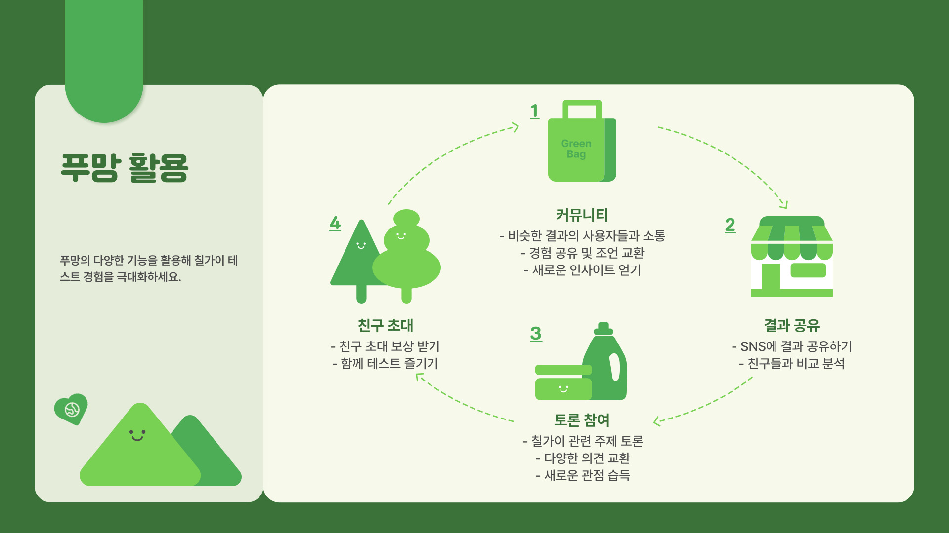 - 적극적으로 다양한 사람들과 소통하여 푸망을 만드는 기회를 늘려보세요.