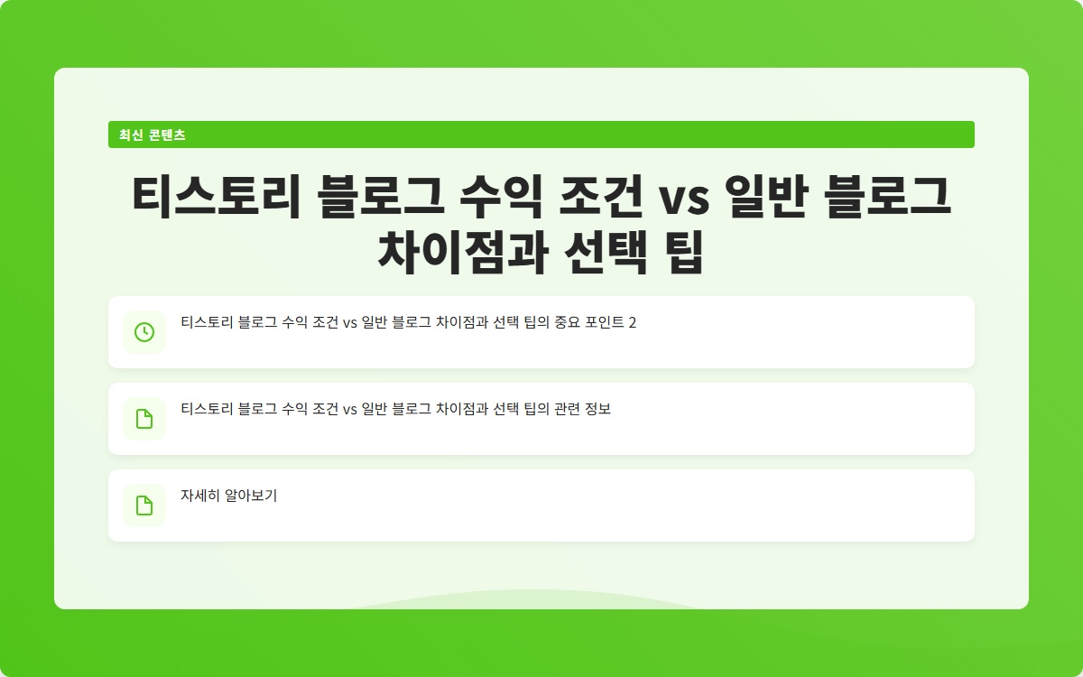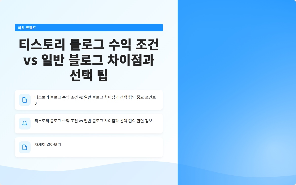 블로그를 시작하려는 여러분, 티스토리 블로그와 일반 블로그는 무엇이 다를까요? 많은 분들이 이 질문을 하고 있습니다. 티스토리 블로그 수익 조건이나 특성을 잘 이해하고 선택하는 것이 중요합니다. 지금 확인해보세요!