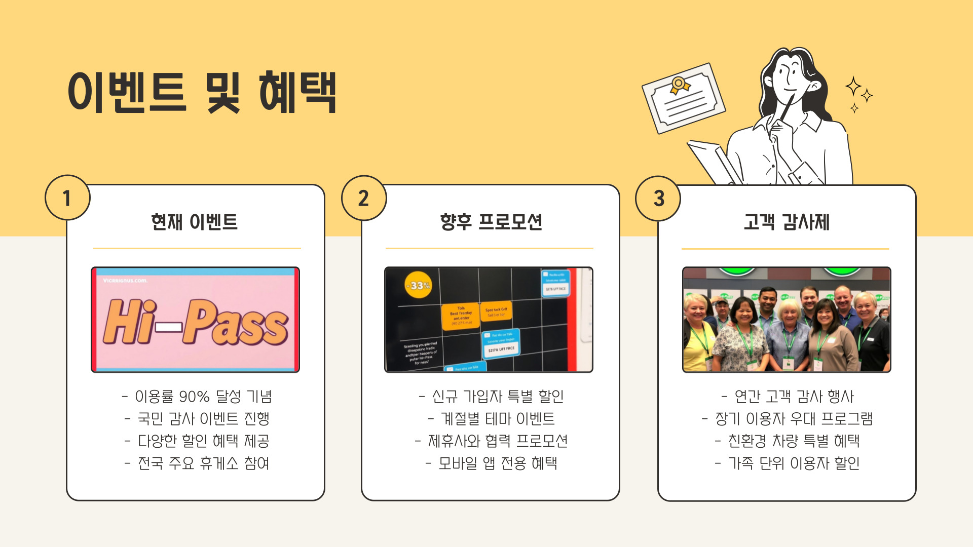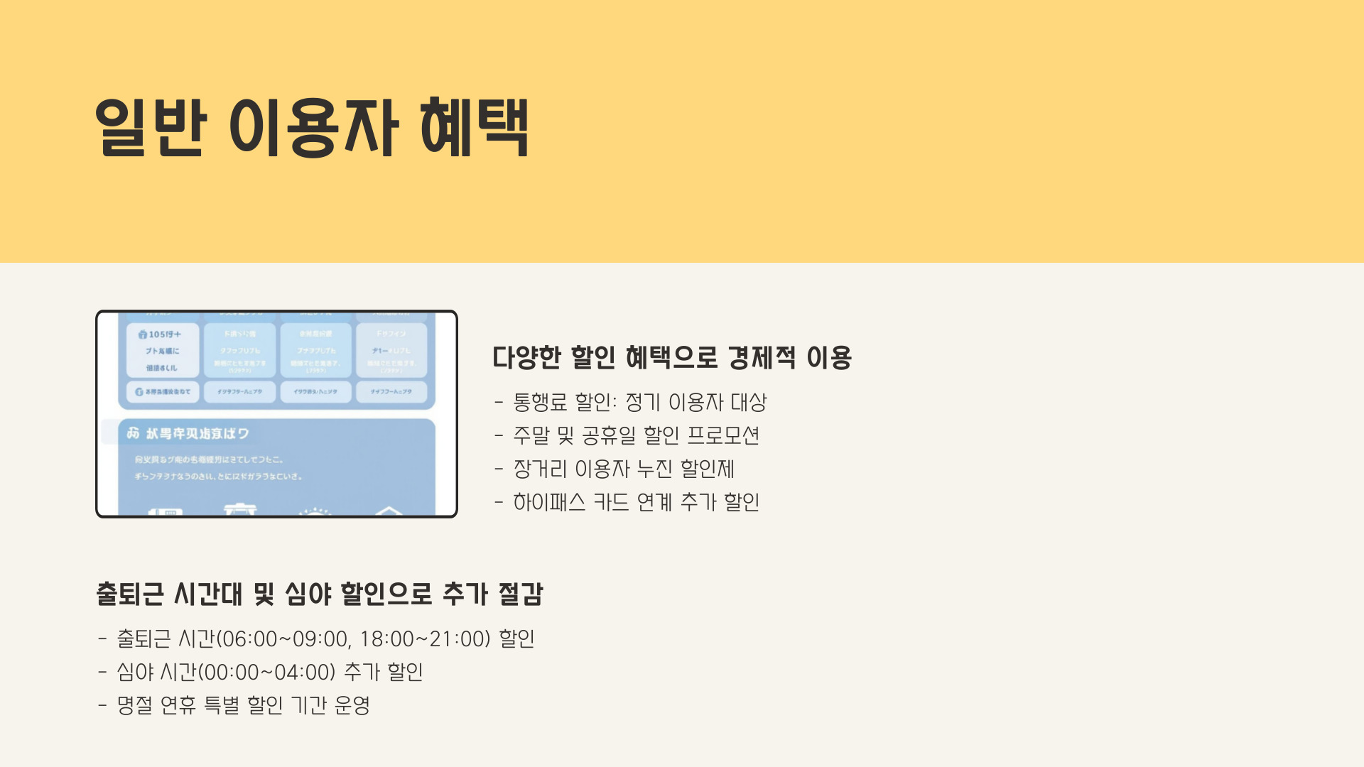 - 하이패스 사용자에게는 특별 할인 및 적립 프로그램이 운영됩니다.
