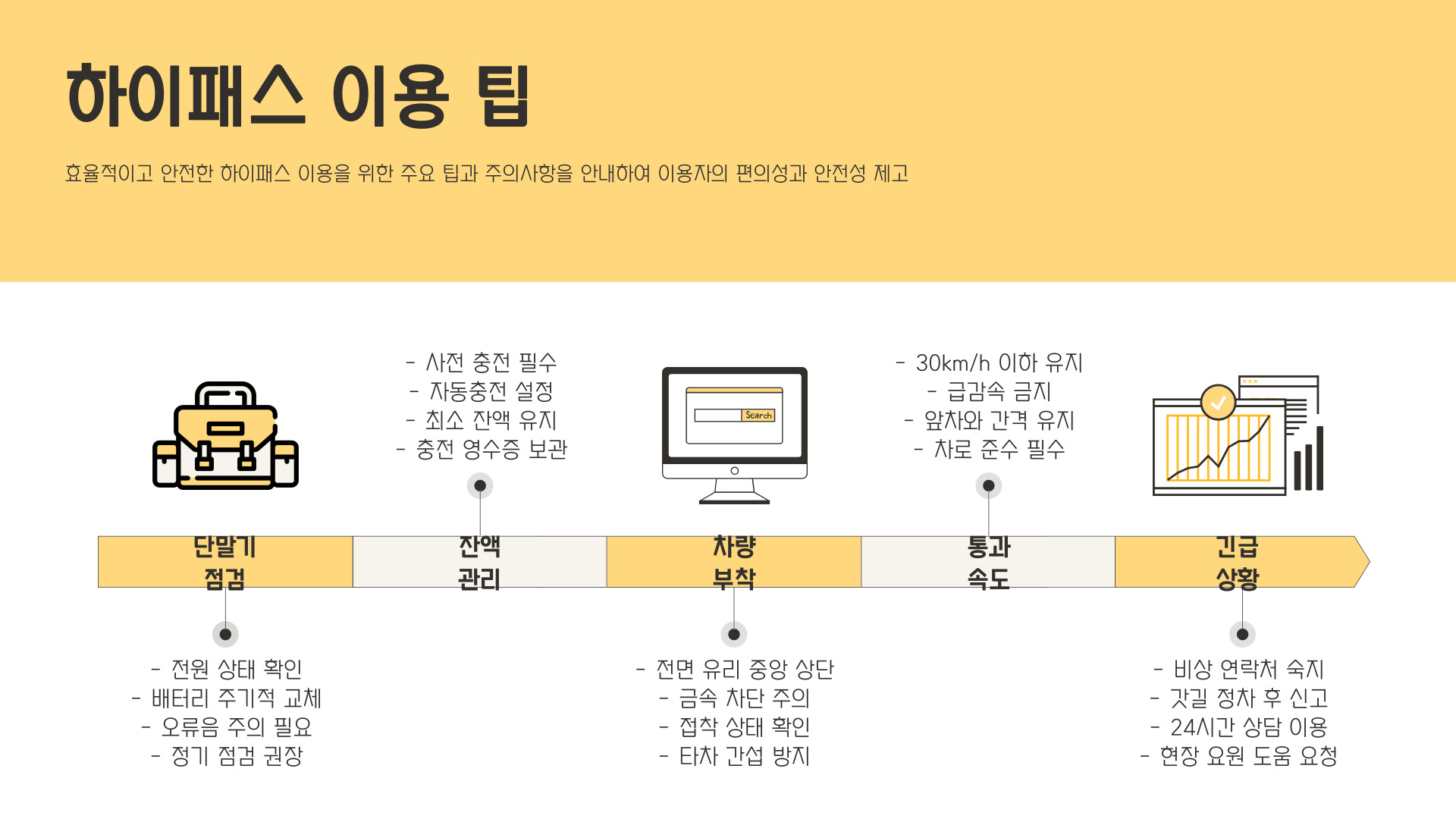 - 하이패스를 이용하면 통행료를 신속하게 납부할 수 있으며, 할인 혜택도 누릴 수 있습니다.